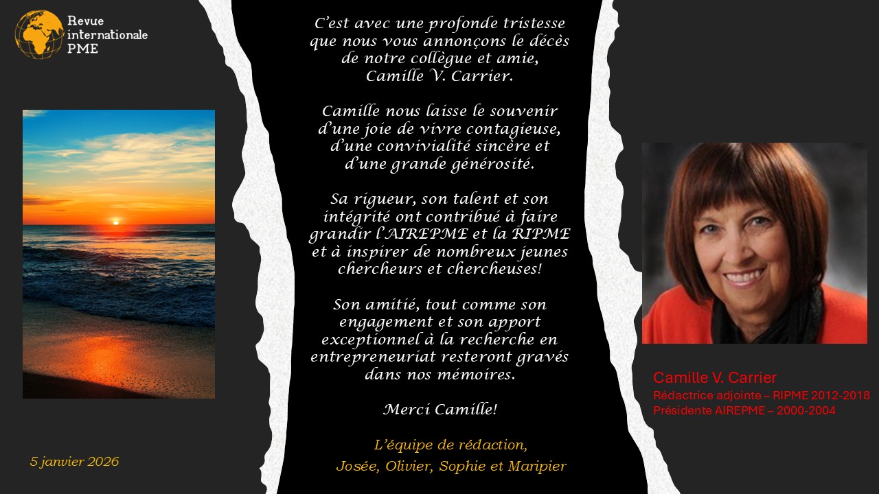 Business Source Complete (EBSCO – États-Unis)/ Dimensions (Digital Science – Royaume-Uni)/Érudit (Canada)/Google Scholar (États-Unis)/ Isidore (France)/ Journal TOCS (Heriot-Watt University – Royaume-Uni)/ Mir@bel (France)/ OAIster (OCLC – États-Unis) /Repère (Canada)/ Scopus (ELSEVIER)/ Scholars Portal Journals (Canada)/ Ulrich’s Periodicals Directory (ProQuest – États-Unis)/ Web of Science (Emerging Sources Citation Index) (Clarivate – Royaume-Uni) /WorldCat (OCLC – États-Unis)